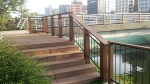 福岡市博多区住吉にある総合商業施設「キャナルシティ博多」と九州1位の歓楽街中州とをつなぐ夢回廊橋と博多川沿いの張り出しデッキをリニューアルしました。